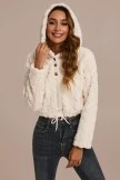 This cozy pile fleece hoodie features a button-front closure, long sleeves, and a unique buttons. The cropped hem makes it the perfect match for your favorite high-waisted denim.