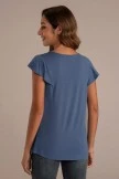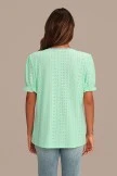 Black Embroidery 3/4 Length Sleeve V Buttons Neck Jersey Top