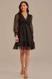 Feminine with an edge is everything that the Black Long Sleeve V Neck Ruffle Midi Dress is! This dress features long sleeves, a v-neckline, and a ruffle hem.
