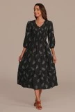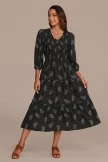 Our Black Palm Print Smocked Midi Dress will take you wherever you want to go this holiday season! Features palm print, forearm length sleeves with elastic gathering at cuffs, a v neckline, and smocked bodies. You can complete the look with some ankle booties, gold jewelry, and a chic crossbody.