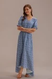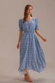 This lovely dress features elastic ruffle cuffs, V-neckline, smocked at waist, and best of all you can find one for your mini-me! This dress boasts blue color with off white floral print and flowy material. We love this dress for any occasion and know you will too!