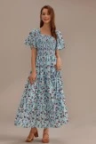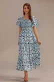 This lightweight flowy floral dress is an instant favorite to twirl our way from season to season. The perfect cross between boho and classic. A subtle square neckline, stretchy smocked bodice, and flutter shoulder sleeve are reason enough to fall in love. Now available in dreamy blue floral.