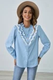 This women shirt made from lightweight material, 50%cotton & 50%polyester, fabric is soft to touch, comfortable to wear. Combines a variety of classic fashion elements, but it looks like it reveals its personality in nature. Long sleeve, ruffle collar, elegant button down blouse. can match most of the clothes in your wardrobe. You can wear it for shopping, dating, walking, or indoor, provides a perfectly simple look for any occasion.