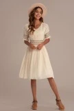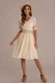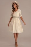 Casual Short Sleeve V Neck Elastic Waist Midi Dress