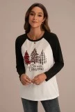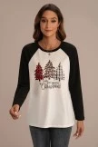 The blouse features raglan sleevea, a cute christmas print graphic on the front and super comfy fit. We are obsessed with this cute comfy pullover blouse !Get this perfect pullover for your Christmas Day!