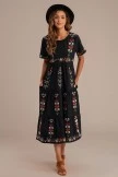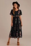 Serving looks at brunch this Summer. Short cute sleeves, embroidery details, and tiered skirt, what more could you want? Pair with cute sandals and a brimmed hat!Â