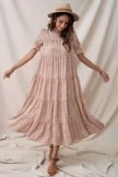 Floral Loose Ruffle Adorable Short Sleeve Round Neck Maxi Dress