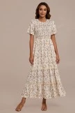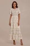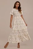 The Floral Round Neck Short Sleeve Smocked Tiered Midi Dress featuring a beautiful floral pattern. Crafted from a breathable fabric that is lined, this dress provides perfect comfort and great style for any occasion. Pair it with your favorite sandals, sunglasses and bag for an effortless church look!