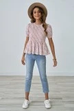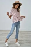 Floral Shirring Ruffle Short Sleeve Round Neck Shirt