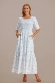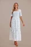 Floral Short Sleeve Square Neck Smocked Tiered Maxi Dress
