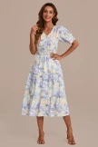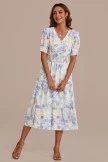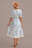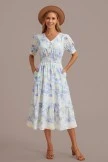 Step into enchantment with the floral dress. This midi dress features a charming floral print and functional buttons for added style and convenience. The v-neckline adds an elegant touch, while gathered shoulder and bust details create a whimsical and playful look.