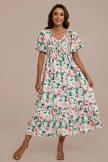 The red floral pattern we used for this dress and the design is also full. it features flutter sleeves and dainty floral details. The bright florals and the flowy silhouette are just what you want in this warm weather. Wear this dress for all your special occasions or even to the office with your favorite flats.