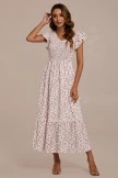 This Floral V Neck Ruffle Short Sleeve Smocked Midi Dress offers a beautiful combination of design and comfort. Made for any time of the year, this dress features a ruffle cap sleeve, midi length, dainty floral pattern. Let the dress be the statement piece for your next special occasion.