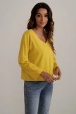 A pop of happy goldenrod is sure to brighten up any winter day. Designed with a v neckline, dropped sleeves, and seams accenting the front and back of the top. Layer with a denim jacket or coat, or pair with your favorite sweatpants for a trendy look you can recreate in a million cozy different ways.Â