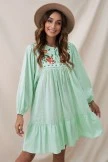 Women’s retro summer long sleeve dress made from high quality material, 100%cotton, swiss dots fabric. Make you feel comfortable and confident. long puff sleeves, tie neck, floral embroidered, babydoll dress, flounce hem, pleated style. Above the knee length dress, perfect for casual daily wear, party, club, work, office, business, vacation, beach, etc.