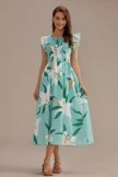 Hit refresh on your dress collection with this floral midi dress. With a round neck, frilled cap sleeves, a smocked bodice and a maxi skirt. Style with sliders for a casual daytime look or dress up with heeled sandals for a wedding.