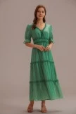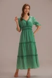 Once you slip into this gorgeous ruffled maxi dress, you feel like you are living in a dream! The fit is wonderfully flattering and all of that ruffed detailing is so feminine and sweeet! This maxi is perfect for attending a wedding or going on a fancy date night! This dress features bubble half sleeves, a v-neck, ruffled detailing, and a defined waist.