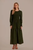If you cultivate an aura of elegance, you need the Green Lantern Sleeve Round Neck Smocked Maxi Dress ! Bodice boasts a round neckline and a gathered detail at the front, with ruffle hem.