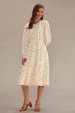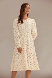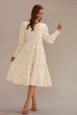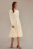 Ivory Floral Long Sleeve Round Neck Tiered Midi Dress
