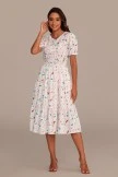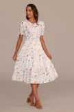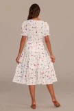 The floral pattern of this dress uses red Misty Rose and a little peacock blue floral pattern. Visually, I really think there are many beautiful butterflies on the dress.