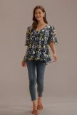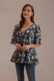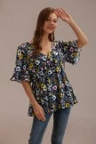 Multi Color Floral Loose Half Sleeve V Neck Top