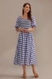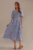 This beautiful blue plaid print midi dress is the perfect combination of comfortable and chic. Featuring a smocked bodice and puff sleeves with a draw string bow detail, this dress is sure to be your favorite!