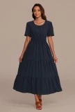 This Navy Short Sleeve Round Neck Pocket Tiered Maxi Dress is equal parts comfy, casual and all things cute! This dress features a round neck , short sleeves, and a comfortable smocked waist. Whether you’re running errands or meeting friends for lunch, this dress will keep you looking stylish and feeling comfortable.