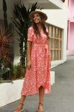 This dress is sure to keep you trendy and comfortable during any season! A tie waist with a working tie, paired with short sleeves, and a round neckline with a keyhole buttoned closed in the back will add the perfect amount of femininity to your wardrobe.