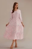 Add an on trend smocked floral midi dress to your closet. With a round neck, long sleeves and a tiered midi skirt. Pair with black heels for polished occasion look or with knee high boots to beat the cold weather.Â