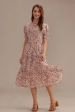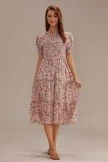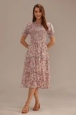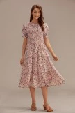 Pink Floral Short Sleeve Round Neck Smocked Tiered Midi Dress