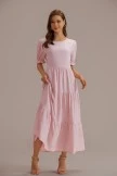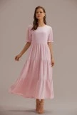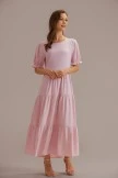 Pink Short Ruffle Sleeve Round Neck Tiered Midi Dress