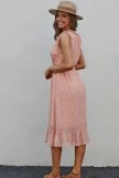 Midi length, floral print, and ruffles oh my! Oh and let’s not forget about the smocked waist! Pair with heels, or sandals for a one-of-a-kind look!