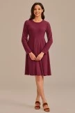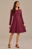 It’s hard to believe a dress as cute as the Purple Knit Long Sleeve Round Neck Midi Dress is real! Features a high rounded neckline and a flattering cinched and elasticized waist. Long sleeves frame the flared skirt.