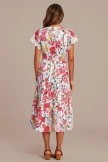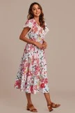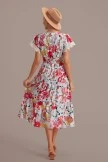 For this dress, we specially designed the sleeves with lace edges, the waist of the skirt is a pleated design, and there are three buttons on the chest. The print is so pretty and perfect for the holidays.
