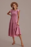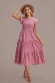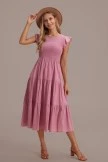 Look and feel your best in the midi dress,that is perfect for any occasion. This dress features flutter sleeves that add a touch of femininity to the design, while the ruched bodice creates a flattering silhouette. The midi length is both elegant and practical, making it perfect for both formal and casual events.
