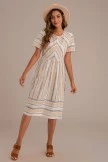 This Multicolor Striped Midi Dress is oh so cute and ready for any season! This one is an easy to pair with multiple colors and the keyhole back add a touch of flair you will love!