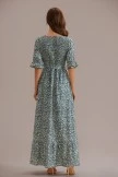 Olive V Neck Short Sleeve Swiss Dots Smocked Tiered Midi Dress