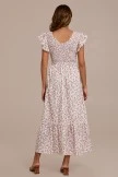 Pink Floral Short Sleeve Round Neck Smocked Tiered Midi Dress