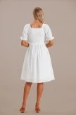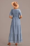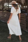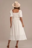Swiss Dots Half Sleeve Round Neck Smocked Embroidery Midi Dress