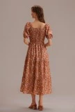 Teal Floral 3/4 Sleeve Square Neck Smocked Tiered Midi Dress