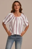 From work to weekend, this blouse does it all. Featuring pleat neckline details, stripe pattern+ a beautiful bubble style. This top will pair well with denim shorts, pencil skirts, or leggings. It’s the kind of top you are going to thank yourself for getting. Because you are just that good 🙂