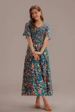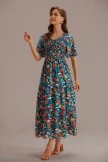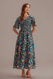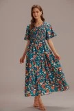 This teal dress has a unique print and can give people a bright feeling. It is very suitable for parties or vacations.The neckline is designed with a V neck, and this length makes you look very elegant.