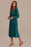 Teal Long Sleeve V Neck Smocked Tiered Midi Dress