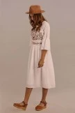 Serving looks at brunch this Summer. 3/4 length bell sleeves, embroidery details, and an elastic waist, what more could you want? Pair with cute sandals and a brimmed hat!Â