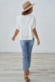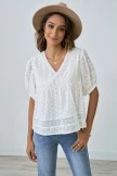Loos fit, V-neck, short puff sleeves with elastic cuff, Embroidery, Hollow Out, Tiered Layer. 100% cotton, soft and comfy material, fabric has no stretch, suit for daily wear, casual, work and so on.