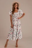 Our new dress is simply elegance at its best! With gorgeous features such as the modest square neckline, shirred bodice, tiered floral detailing on the maxi skirt, and the stunning light olive green color; you’re sure to turn heads wherever you go! This darling dress has stolen our hearts, make sure to get one before they’re gone!