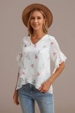 A top with a little detail is the prettiest piece of clothing! Features on this one include floral prints, a V neckline and ruffled cuffs. It’s a nice casual piece you can wear during the daytime with denim shorts, lace up sandals, and a few mixed accessories. Perfect for brunch with a friend or mid-afternoon walk with a loved one!