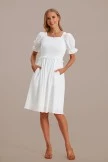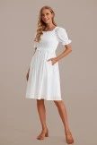 Our Puff Sleeve Smocked Midi Dress is a must-have for the fall season! This square neck dress features short puff sleeves and high waist. This dress looks so cute paired with booties and a layered necklace for a fun picnic with the besties!
