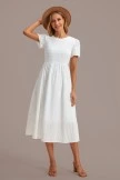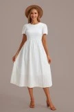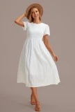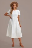 Show off your flirty side while wearing this white smocked midi dress! Features include short sleeves, a smocked bodice and a keybole at the back of the neck. Accentuate the look by pairing it with some strappy high heels or open toed sandals and a couple fun jewelry pieces!