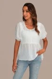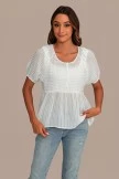 This white top features short puff sleeves! This is a great top to wear when you’re out with friends or significant other! You can try this with shorts or jeans, then layer it with a few mixed accessories.